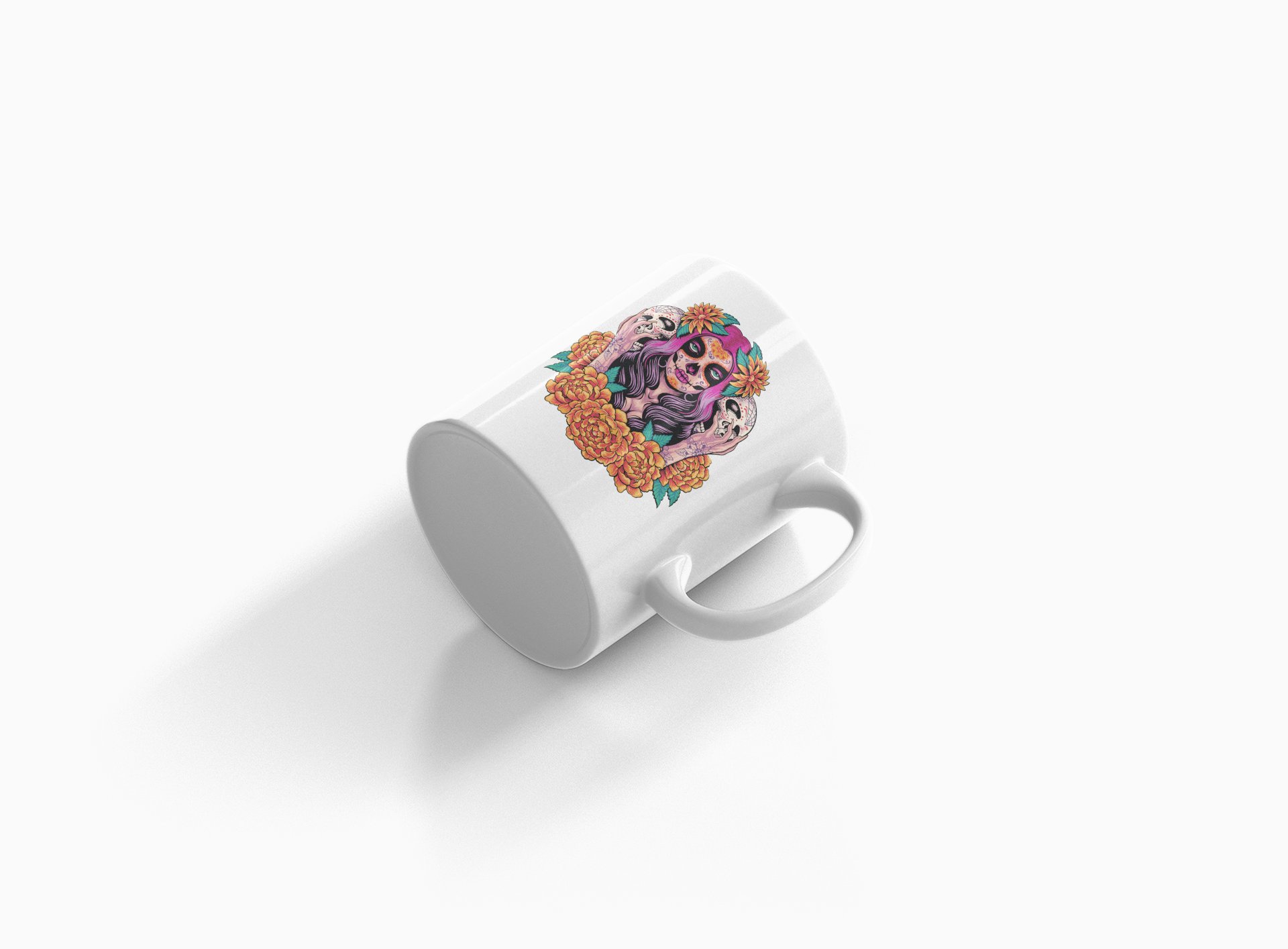 Sugar skull - animation themed printed ceramic white coffee and tea mugs/ cups for animation lovers