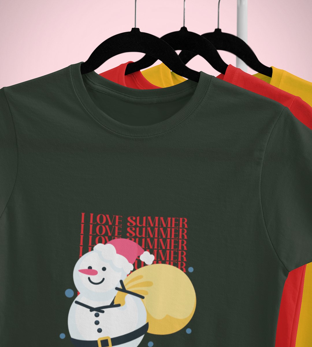 Summer Lover Snowman : Best Printed T-shirt (Green) Perfect Gift For Secret Santa For Boys Girls
