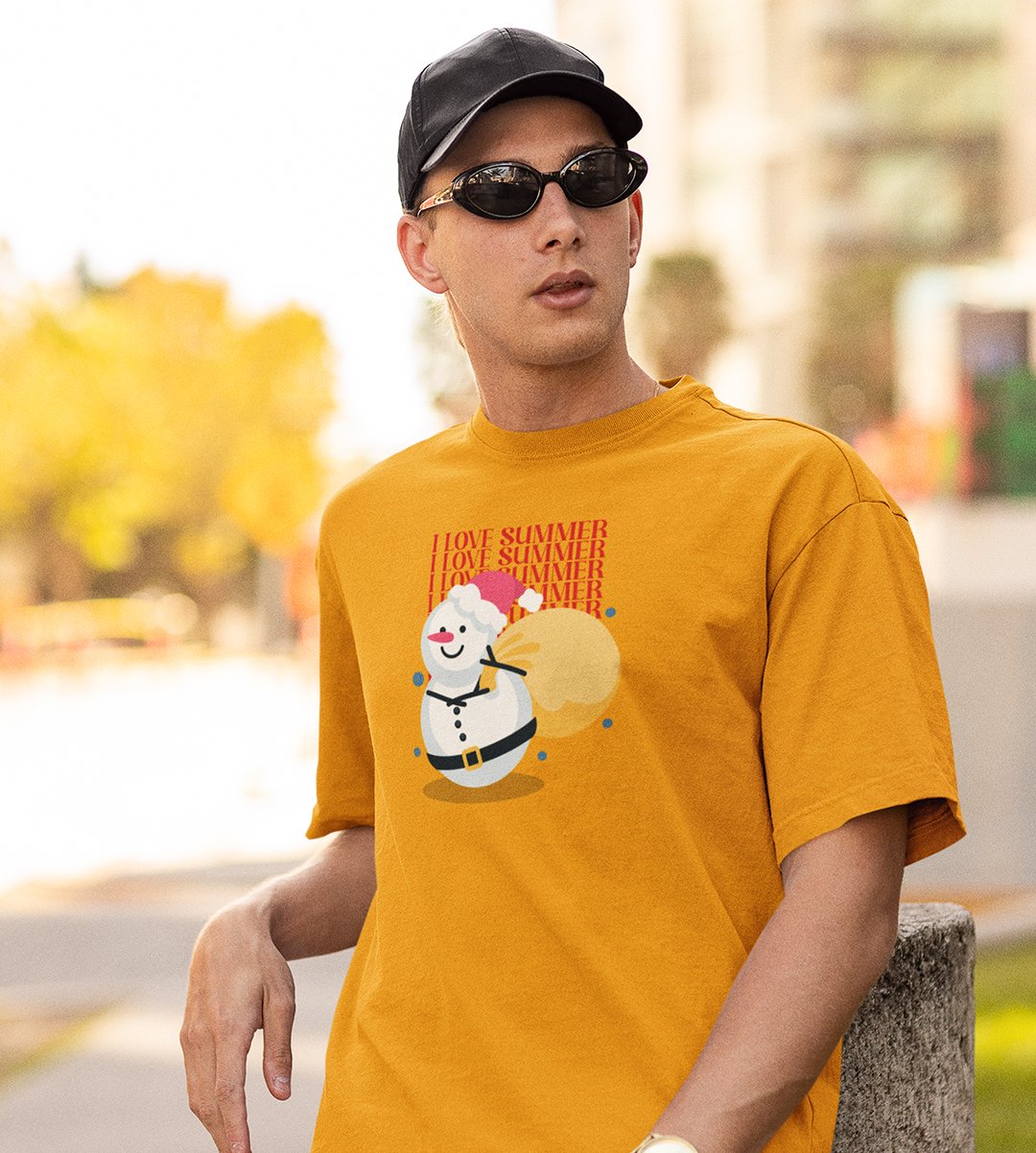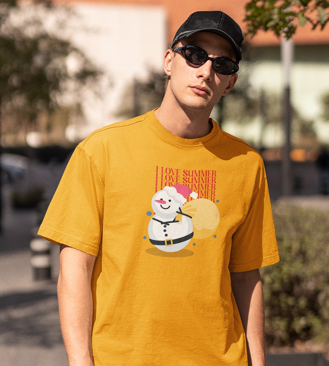 Summer Lover Snowman : Best Printed T-shirt (Yellow) Perfect Gift For Secret Santa For Boys Girls