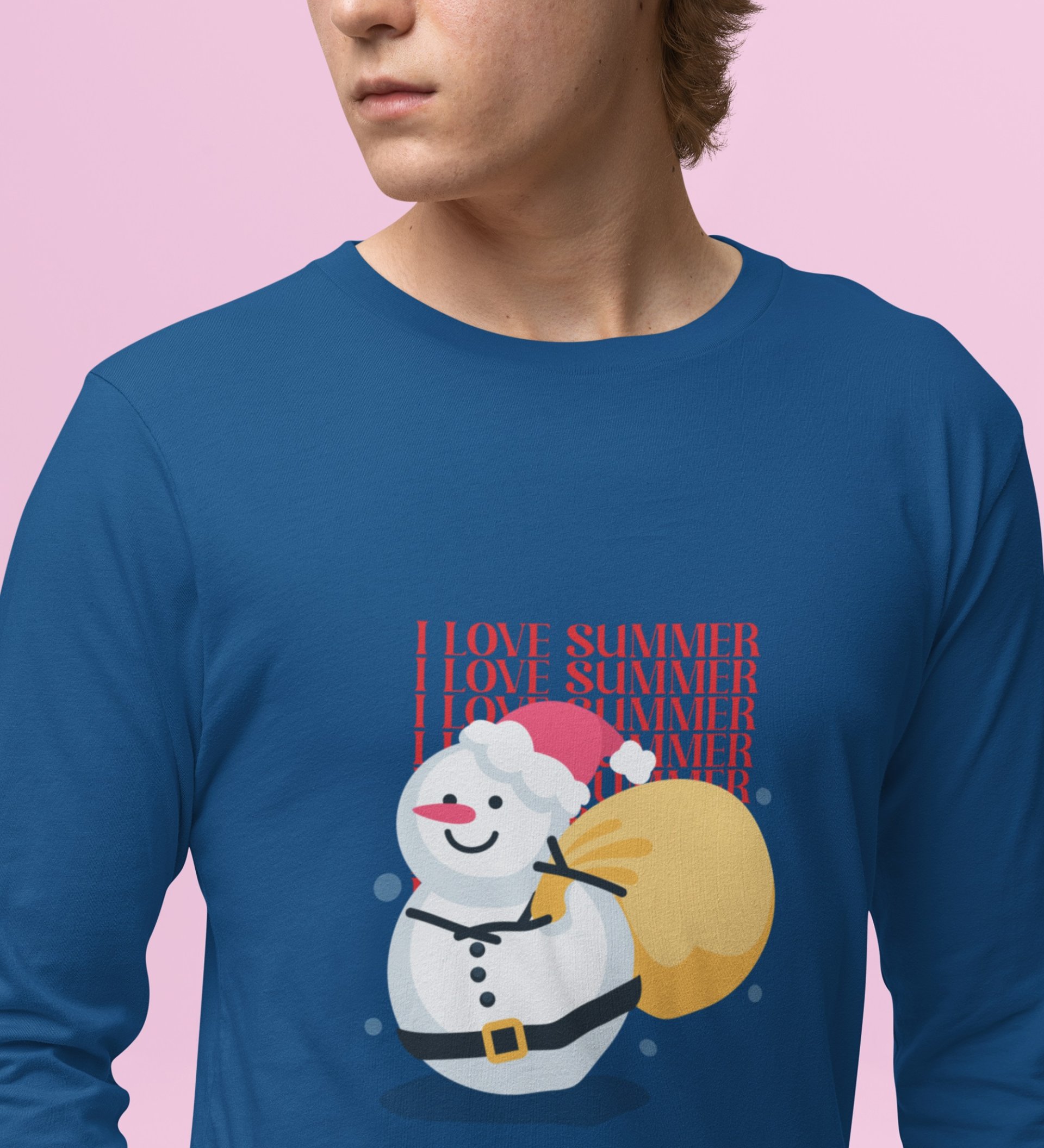 Summer Lover Snowman: Most Unique DesignerFull Sleeve T-shirt Blue Best Gift For Boys Girls