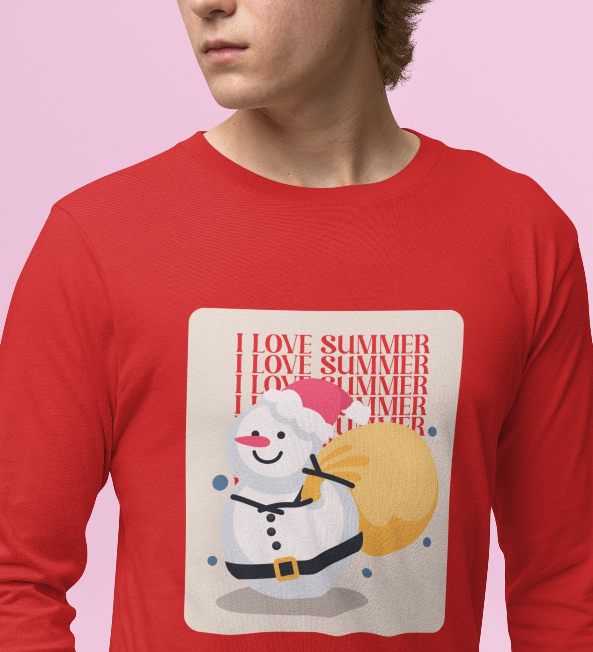Summer Lover Snowman: Most Unique DesignerFull Sleeve T-shirt Red Best Gift For Boys Girls