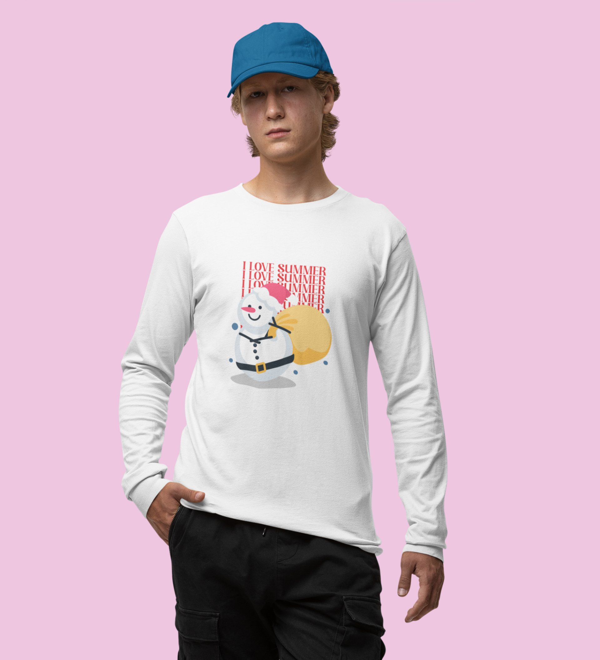 Summer Lover Snowman: Most Unique DesignerFull Sleeve T-shirt White Best Gift For Boys Girls