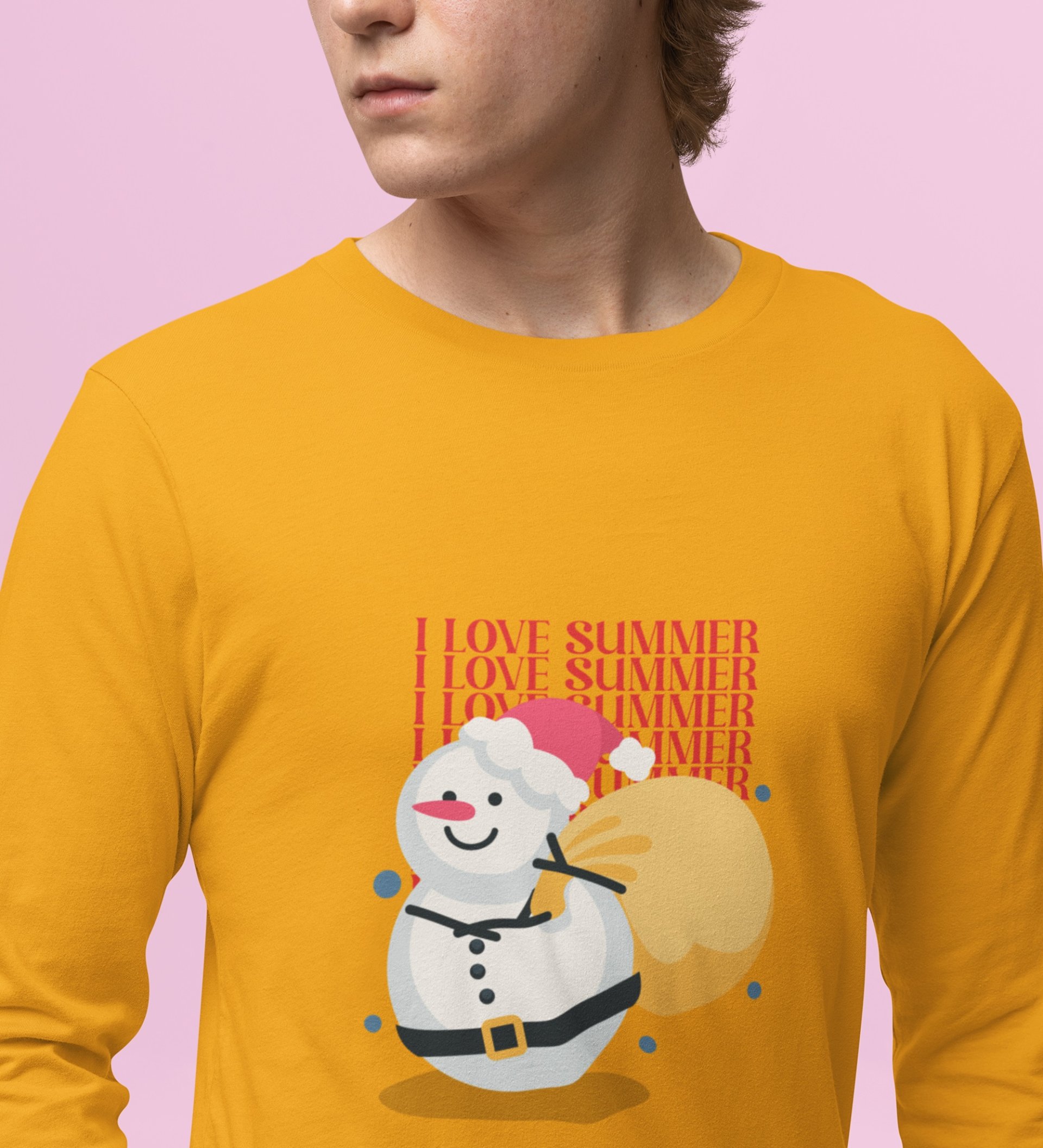 Summer Lover Snowman: Most Unique DesignerFull Sleeve T-shirt Yellow Best Gift For Boys Girls