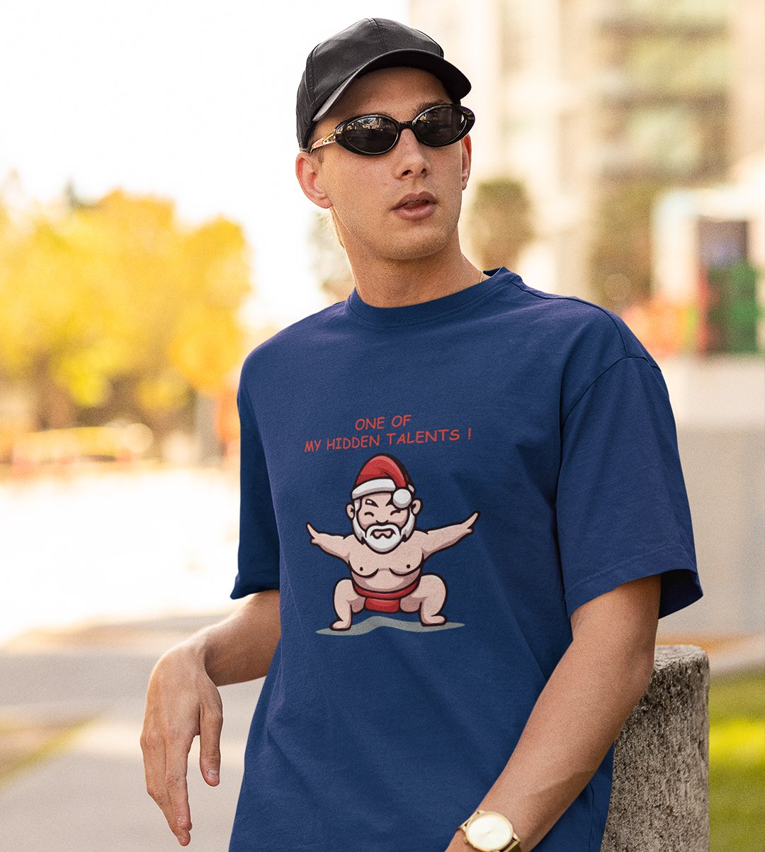 Sumo Santa : Best Printed T-shirt (Blue) Best Gift For Kids Boys Girls