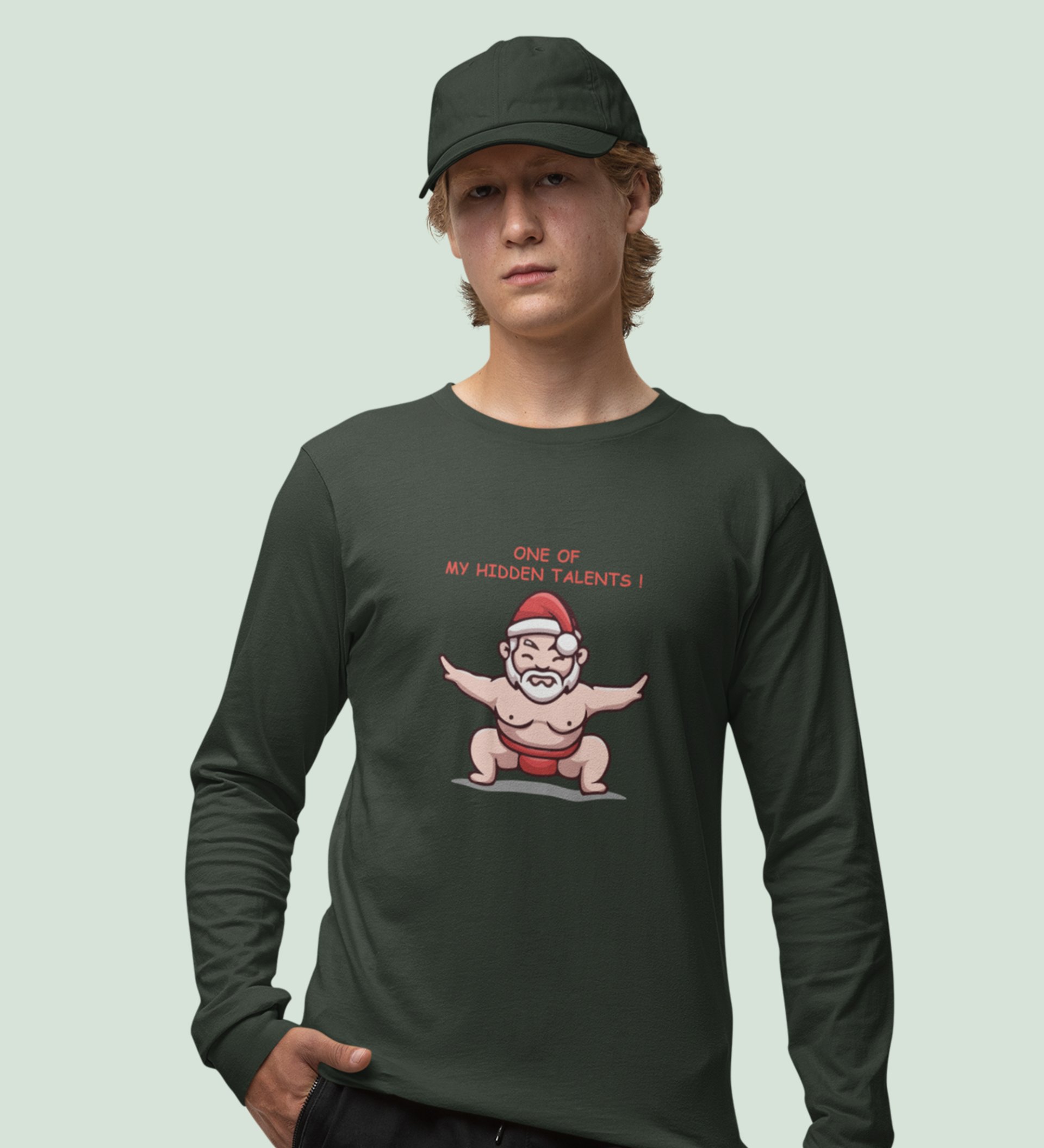 Sumo Santa: Unique DesignedFull Sleeve T-shirt Green Perfect Gift For Boys Girls