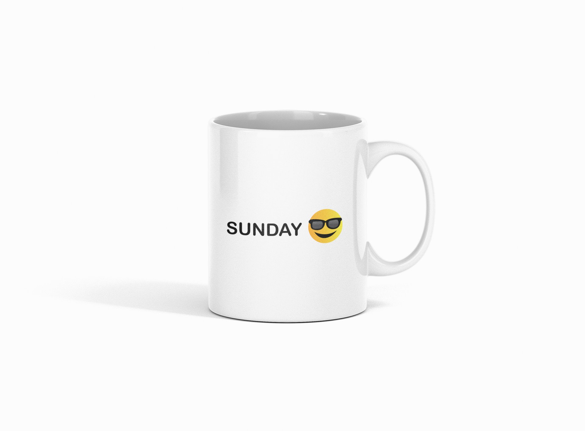 Sunday Look Emoji - emoji printed ceramic white coffee and tea mugs/ cups for emoji lover people