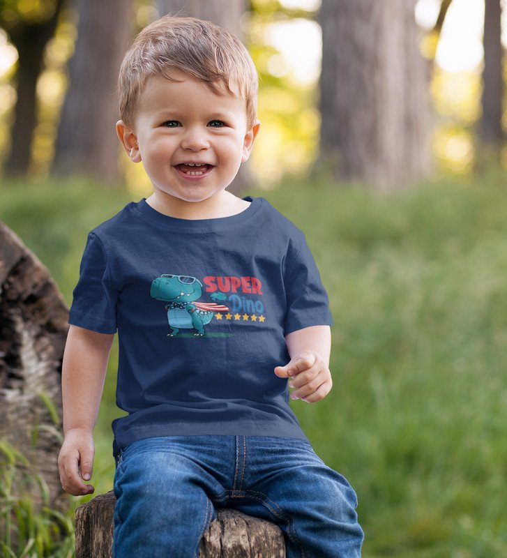 SuperoHero Dino, Boys Printed Crew Neck T-shirt (Navy Blue)
