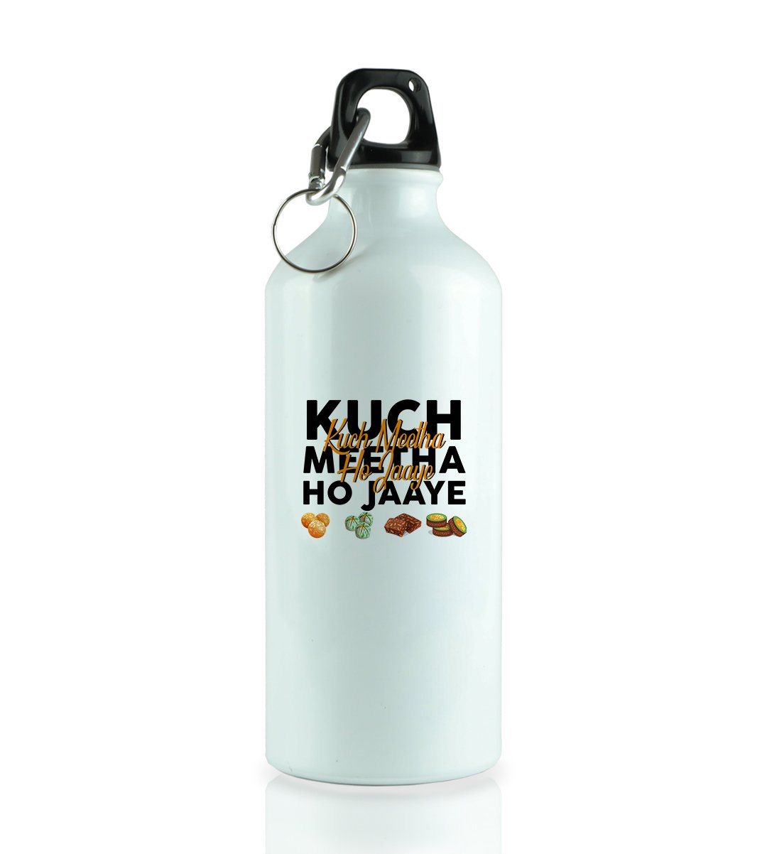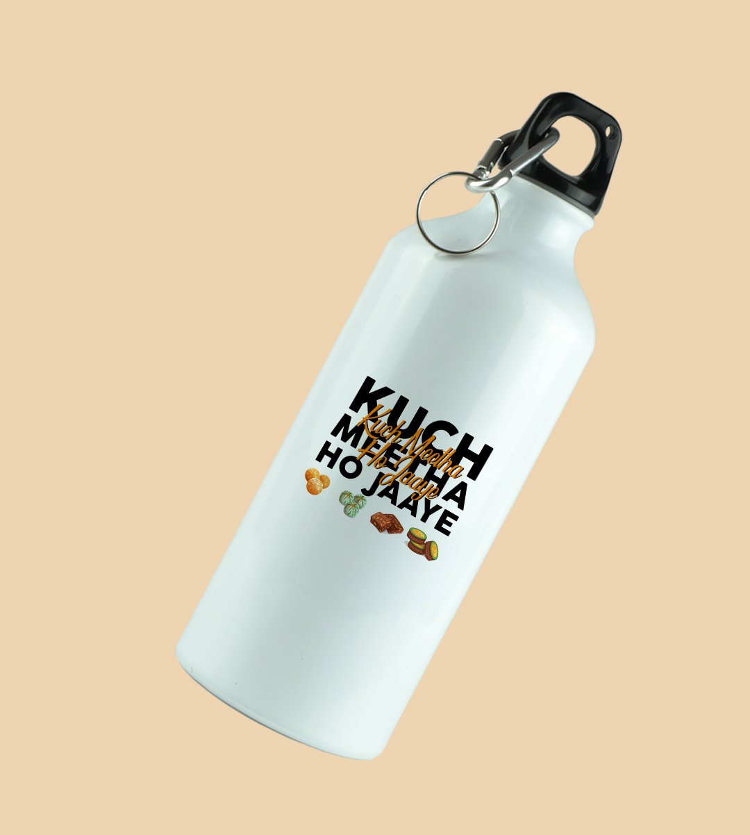 Satisfy your sweet cravings with our "Sweet Indulgence" sipper bottle. The message "Kuch Meetha Ho Jaye" invites you to dive into a delightful world of sweets and treats. This playful design features an array of delectable confections, making every sip a celebration of sweetness and joy.