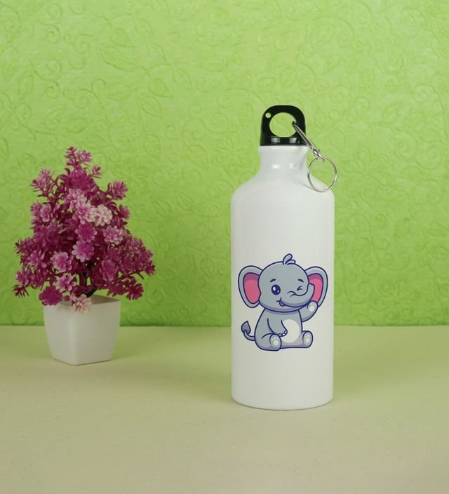 Sweet Sitting Baby Elephant Printed Aluminium Water Bottle 600ml