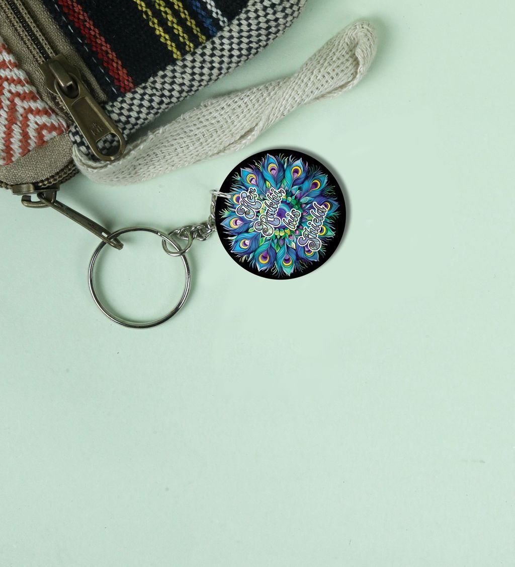 Symbol of Protection and Love Mandala Printed Round Keychain Pack of 2