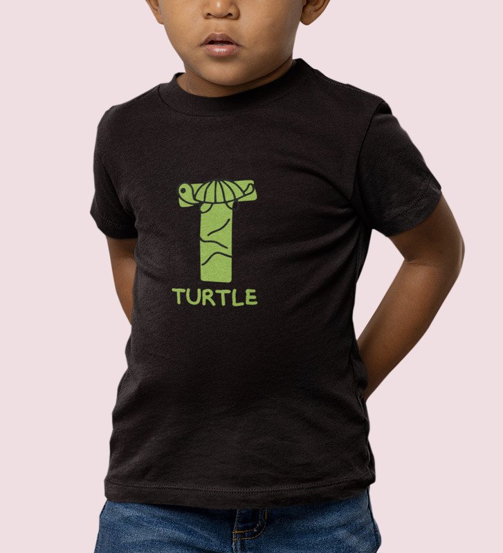 Talking Turtle, Boys Round Neck Printed Blended Cotton Tshirt (Black)