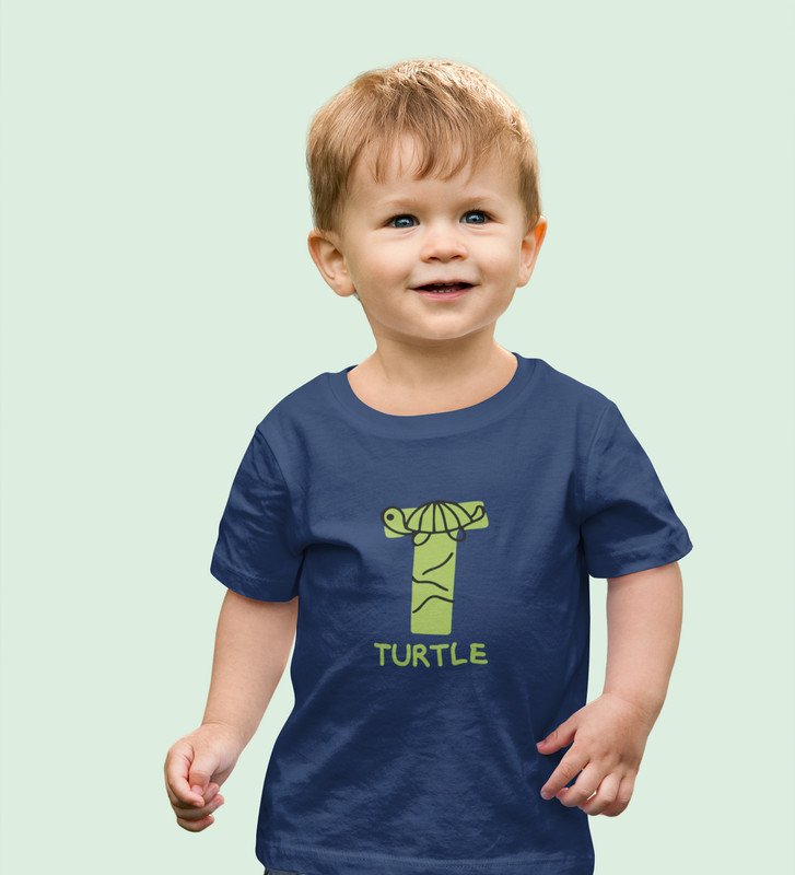 Talking Turtle, Boys Round Neck Printed Blended Cotton tshirt (Navy blue)