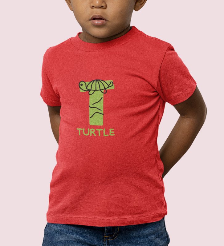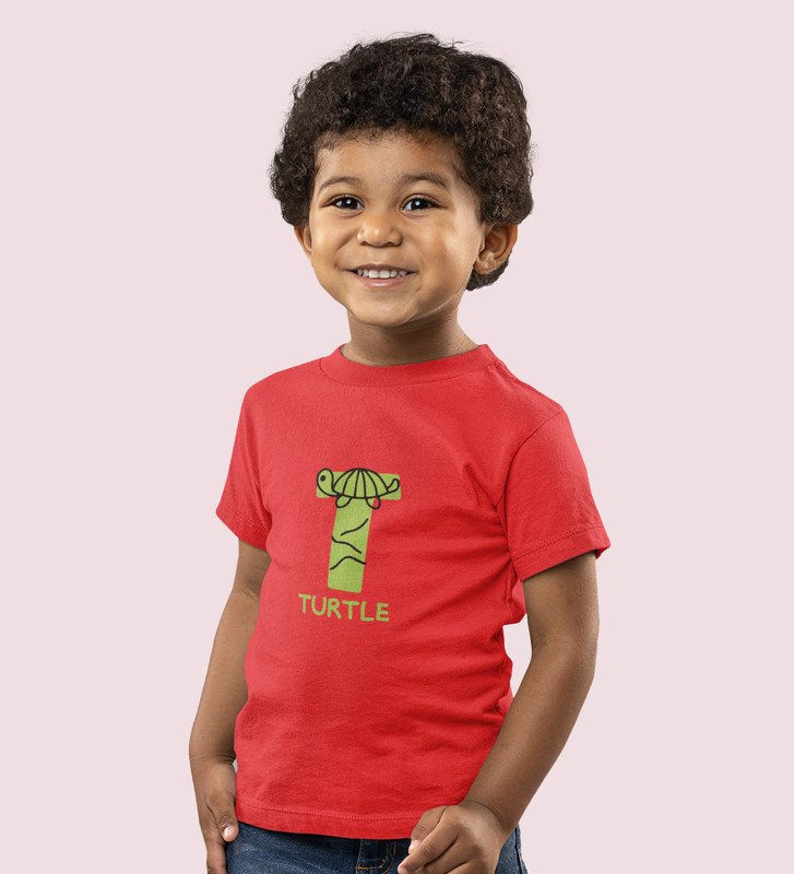 Talking Turtle, Boys Round Neck Printed Blended Cotton Tshirt (Red)