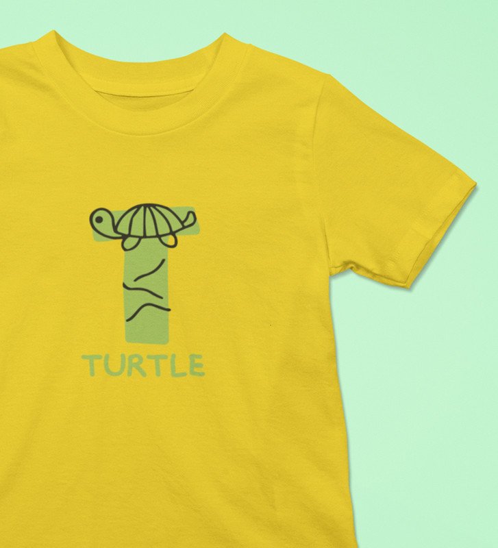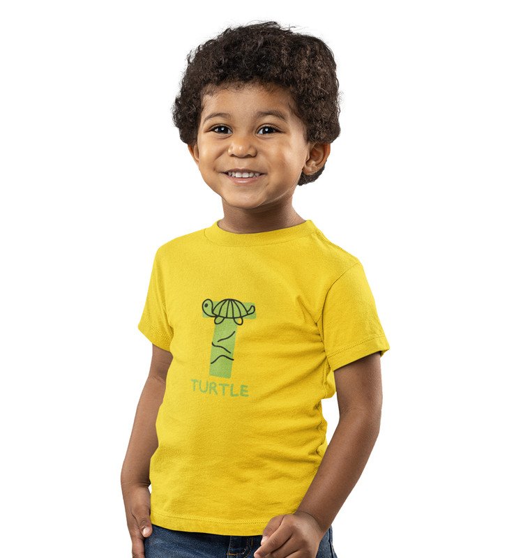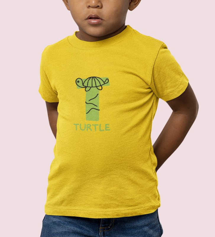 Talking Turtle, Boys Round Neck Printed Blended Cotton Tshirt (Yellow)