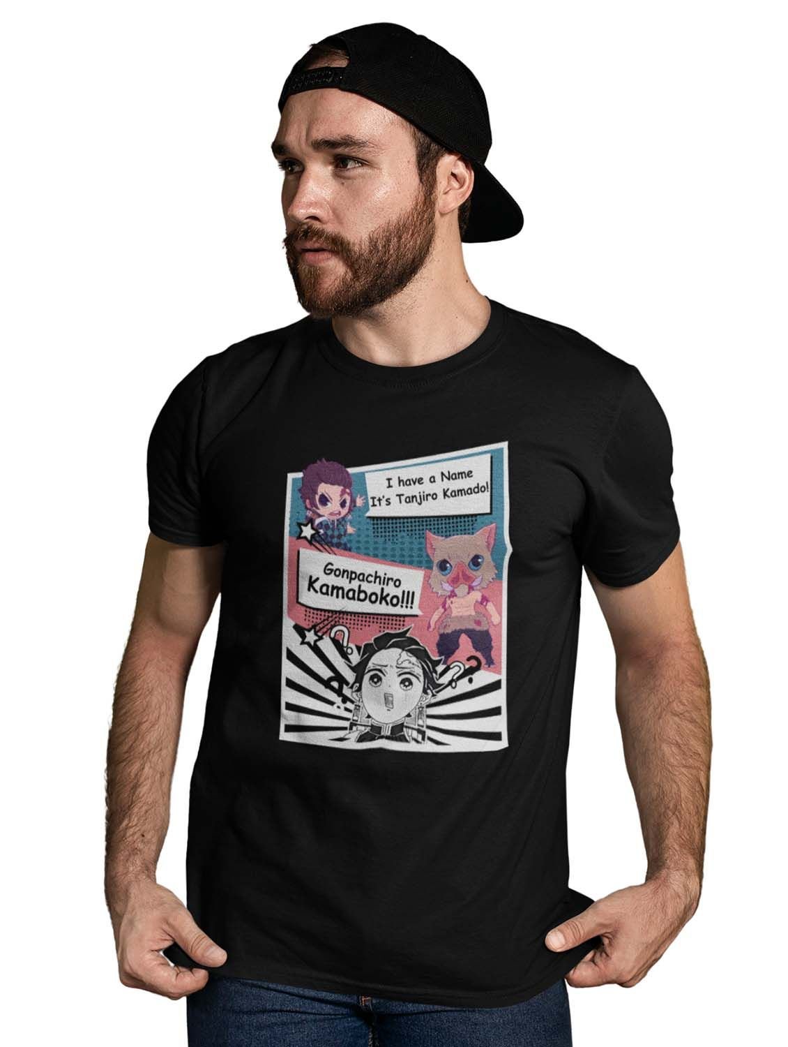 Tanjiro x Inosuke - Black printed cotton t-shirt - Comfortable and Stylish Tshirt