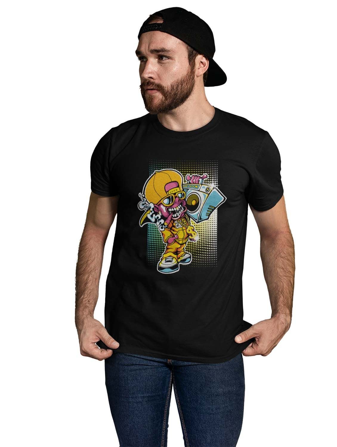 Hip-Hop Drip Black Round Neck Cotton Half Sleeved T-Shirt with Printed Graphics
