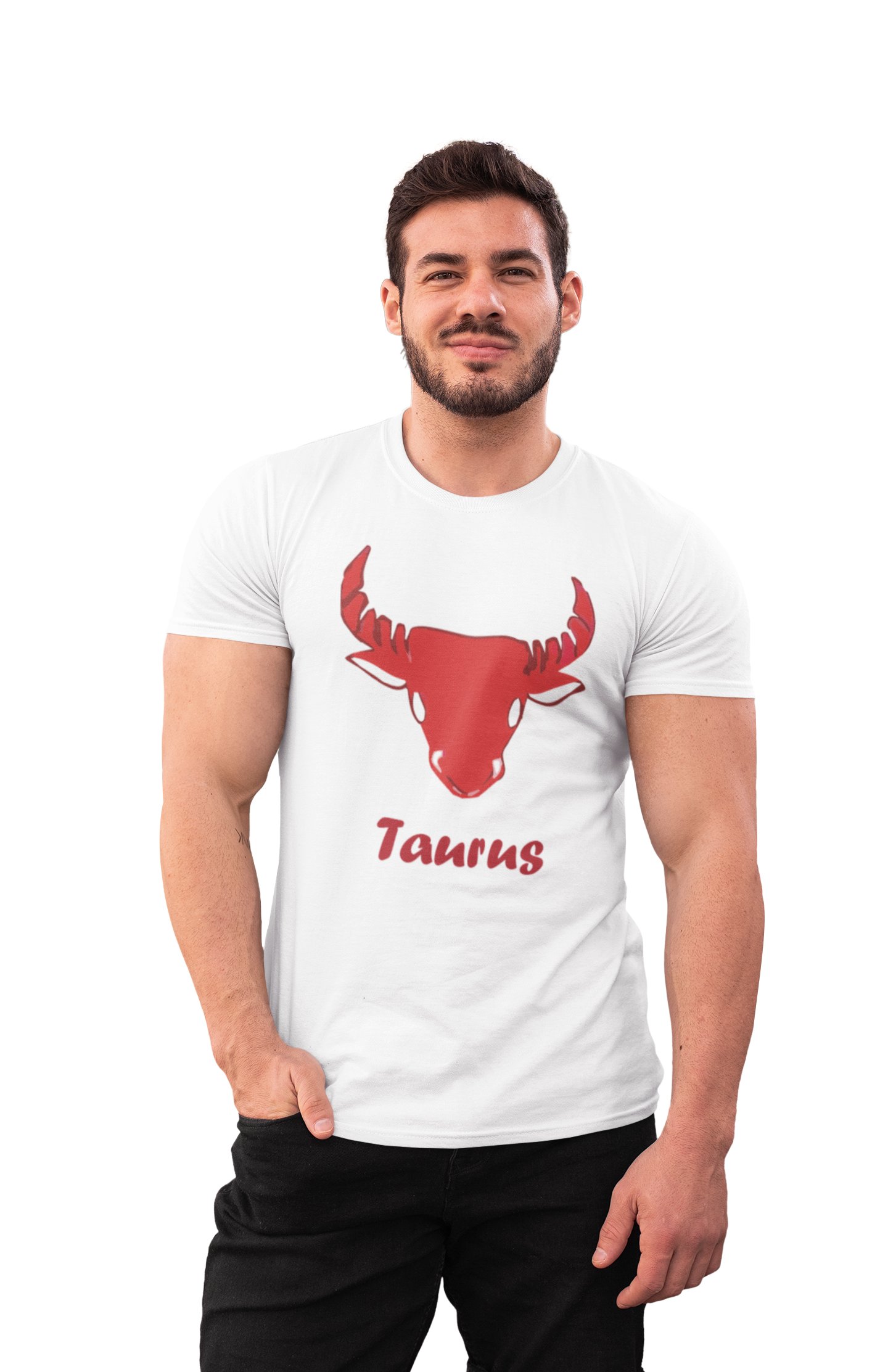 Taurus (BG Red) (White T) - Printed Zodiac Sign Tshirts - Made especially for astrology lovers people