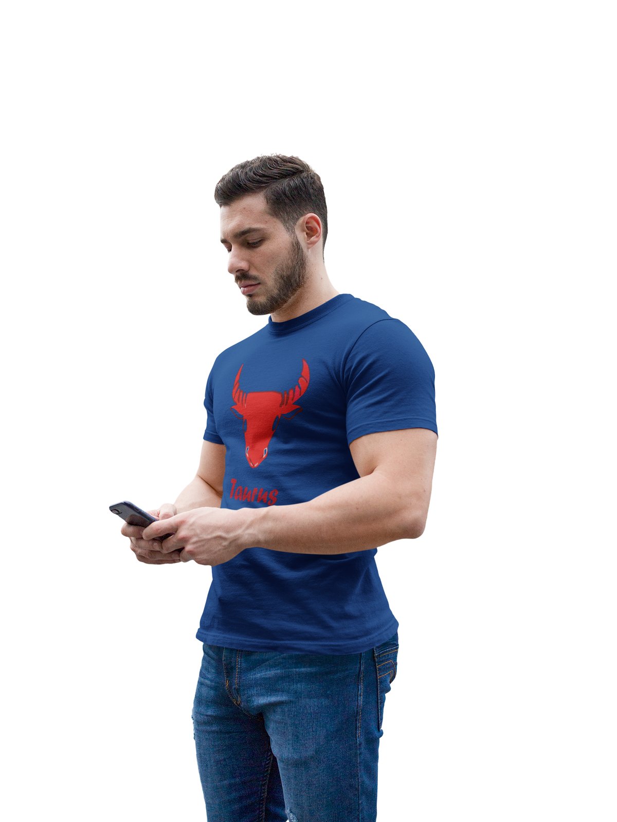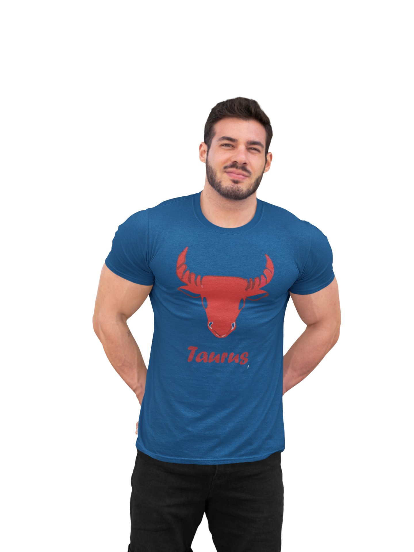 Taurus (BG Red)(Blue T) - Printed Zodiac Sign Tshirts - Made especially for astrology lovers people