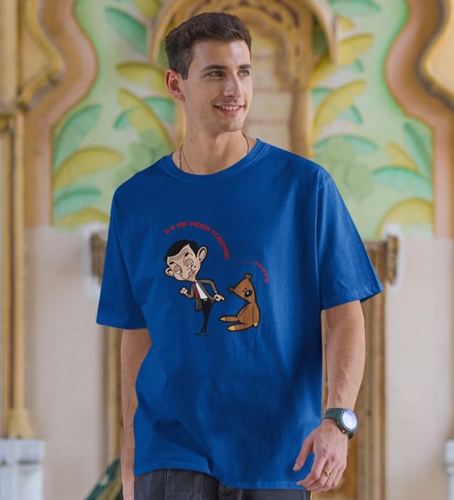Teddy And The Bean Blue Round Neck Cotton Half Sleeved Men T Shirt with Printed Graphics