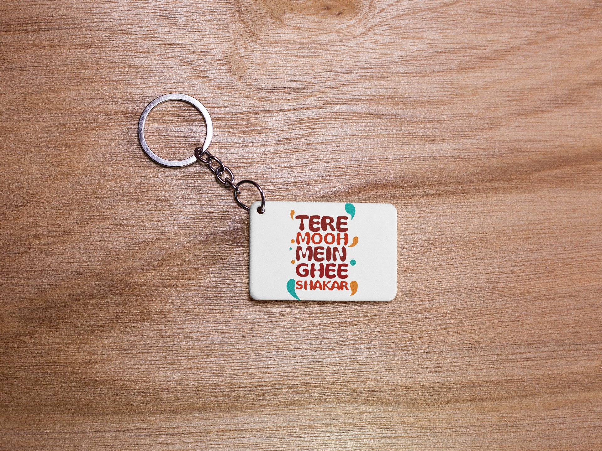 Tere Mooh Mein Ghee Shakar' -White -Designable Dialogues Keychain(Combo Set Of 2)