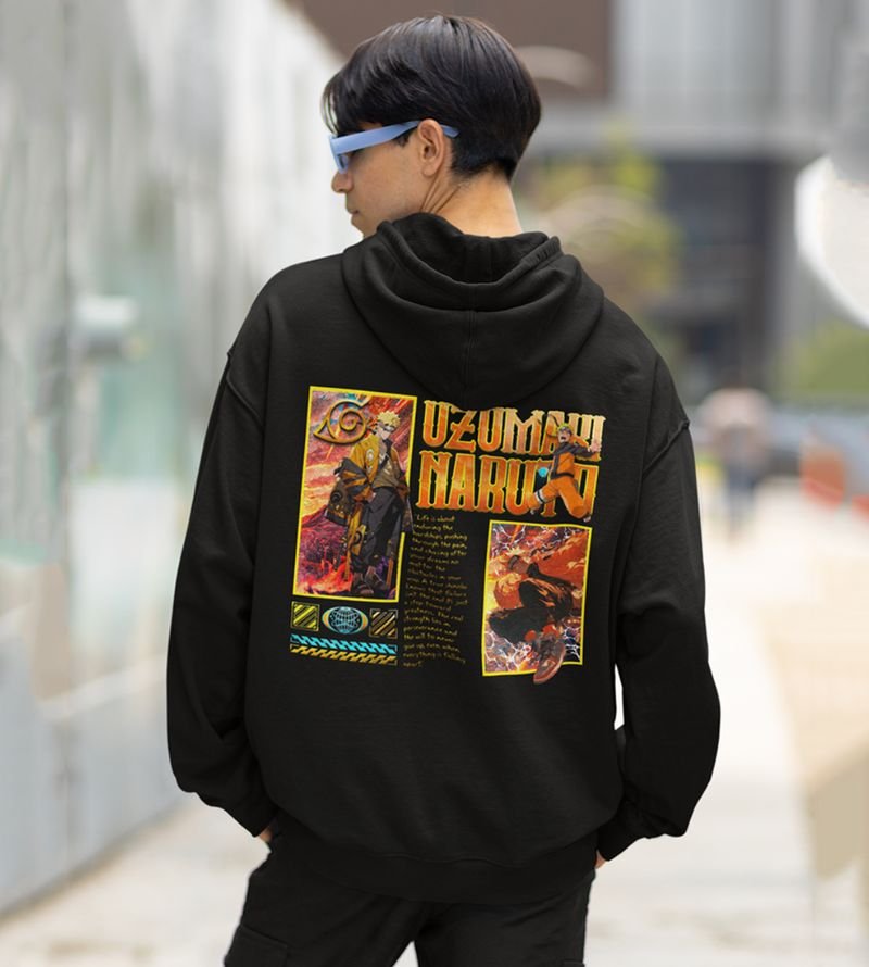 The 7th Hokage and the Protector of the Hidden Leaf Printed Black Cotton Hoodie For Men