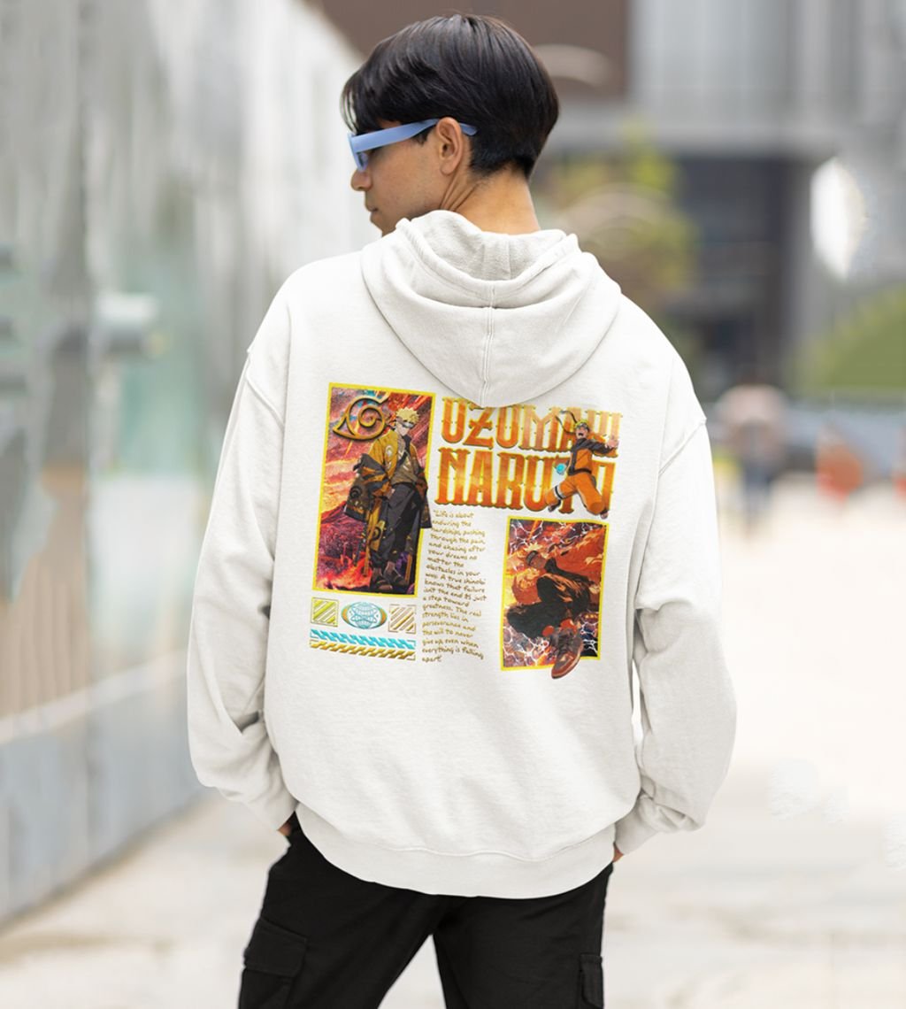 The 7th Hokage and the Protector of the Hidden Leaf Printed WhiteCotton Hoodie For Men