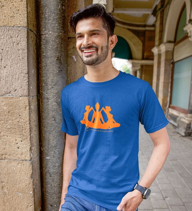 The Art Of Transformation Blue Round Neck Cotton Half Sleeved Men T-Shirt with Printed Graphics
