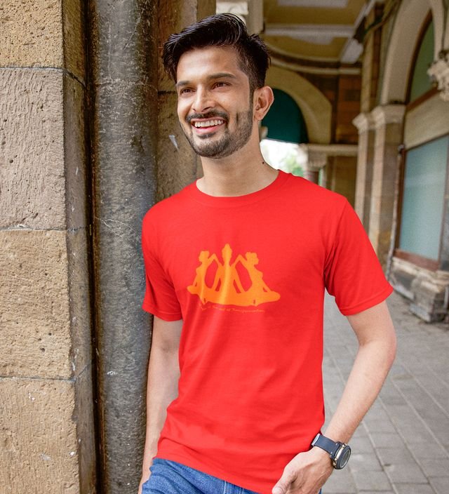 The Art Of Transformation Red Round Neck Cotton Half Sleeved Men T-Shirt with Printed Graphics