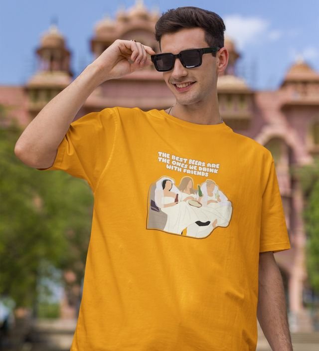 The Best Beers Yellow Round Neck Cotton Half Sleeved Men T Shirt with Printed Graphics