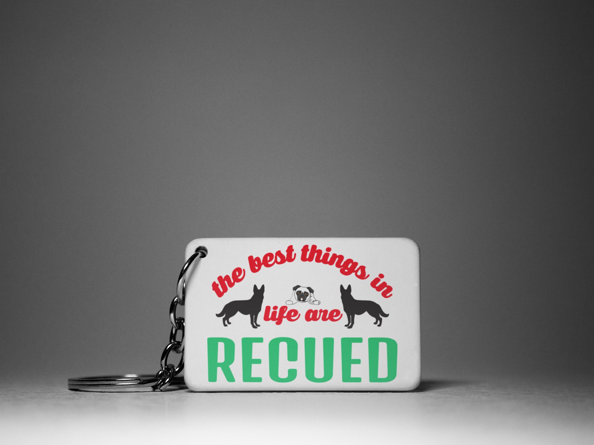 The Best Things In Are Rescued-White -Designable Keychains(Pack Of 2)