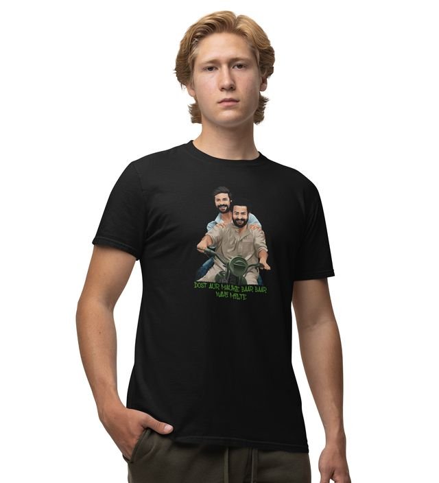 The Chance Of Friendship Black Round Neck Cotton Half Sleeved Men T-Shirt with Printed Graphics