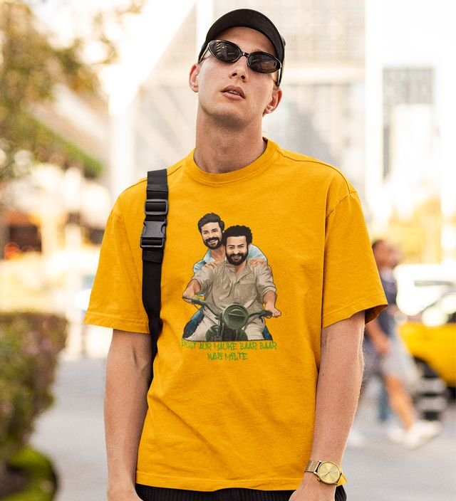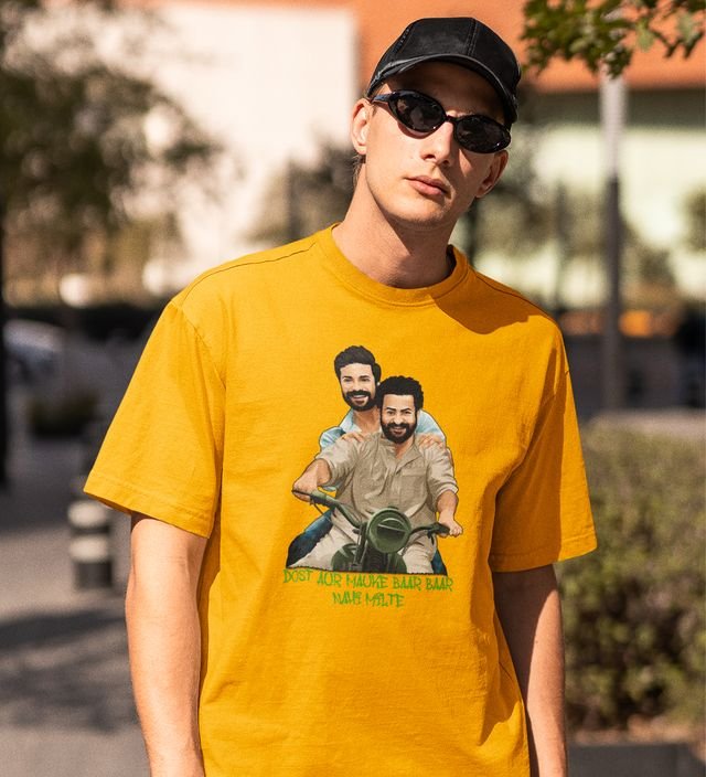 The Chance Of Friendship Yellow Round Neck Cotton Half Sleeved Men T-Shirt with Printed Graphics