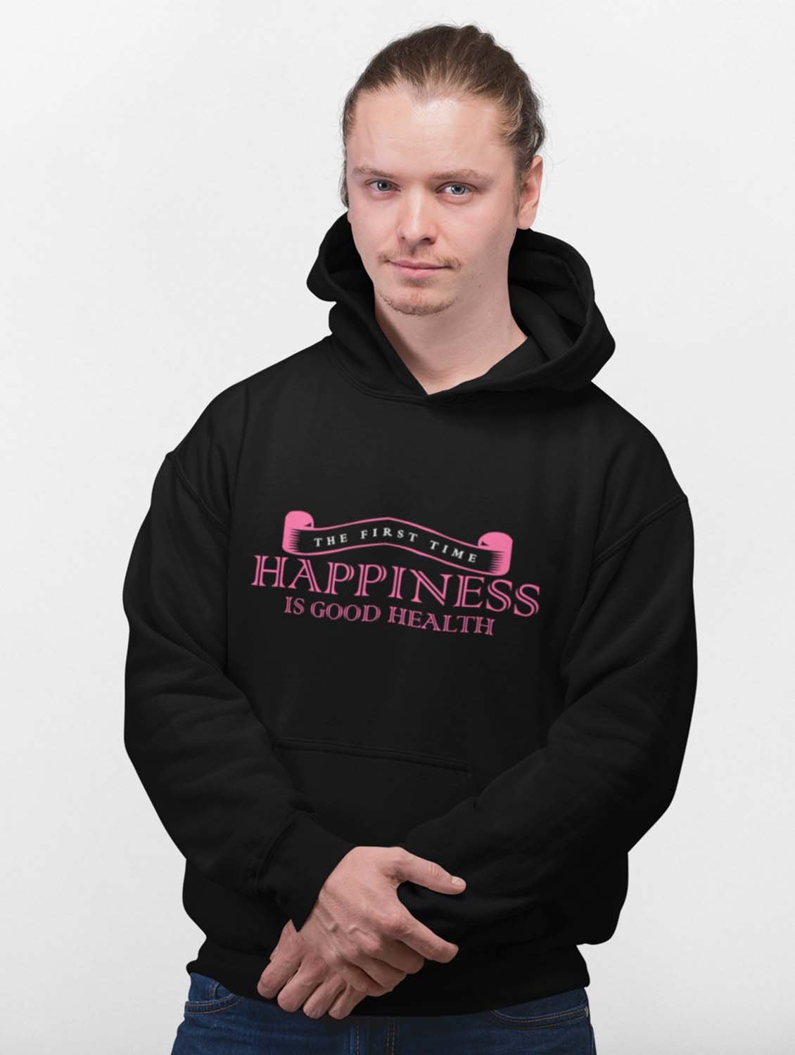 The First Time, Happiness printed artswear black hoodies for winter casual wear specially for Men
