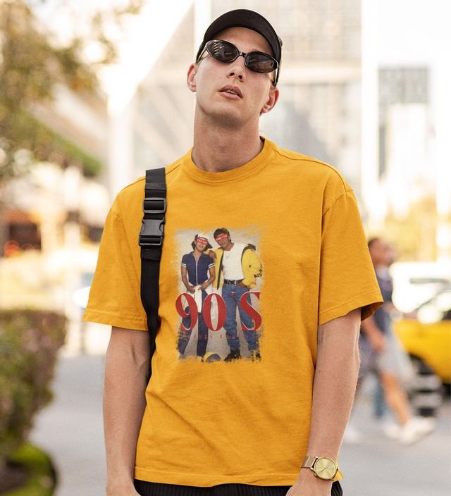 The Friendship Era Yellow Round Neck Cotton Half Sleeved Men T Shirt with Printed Graphics