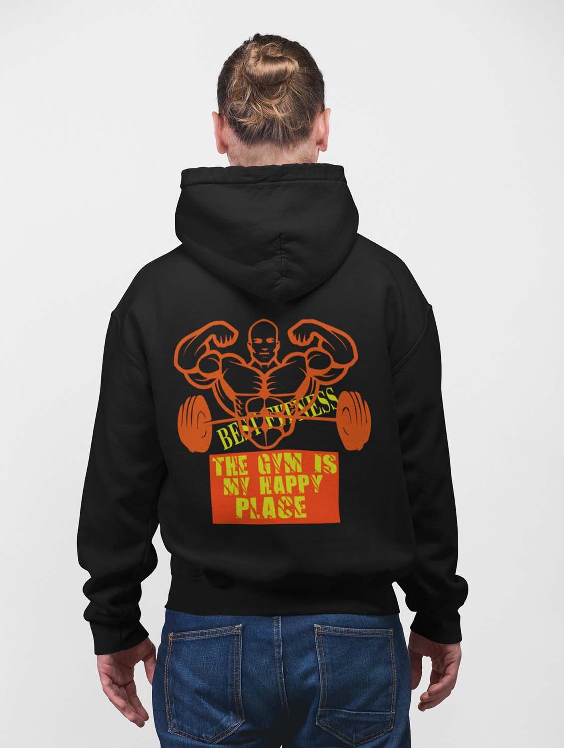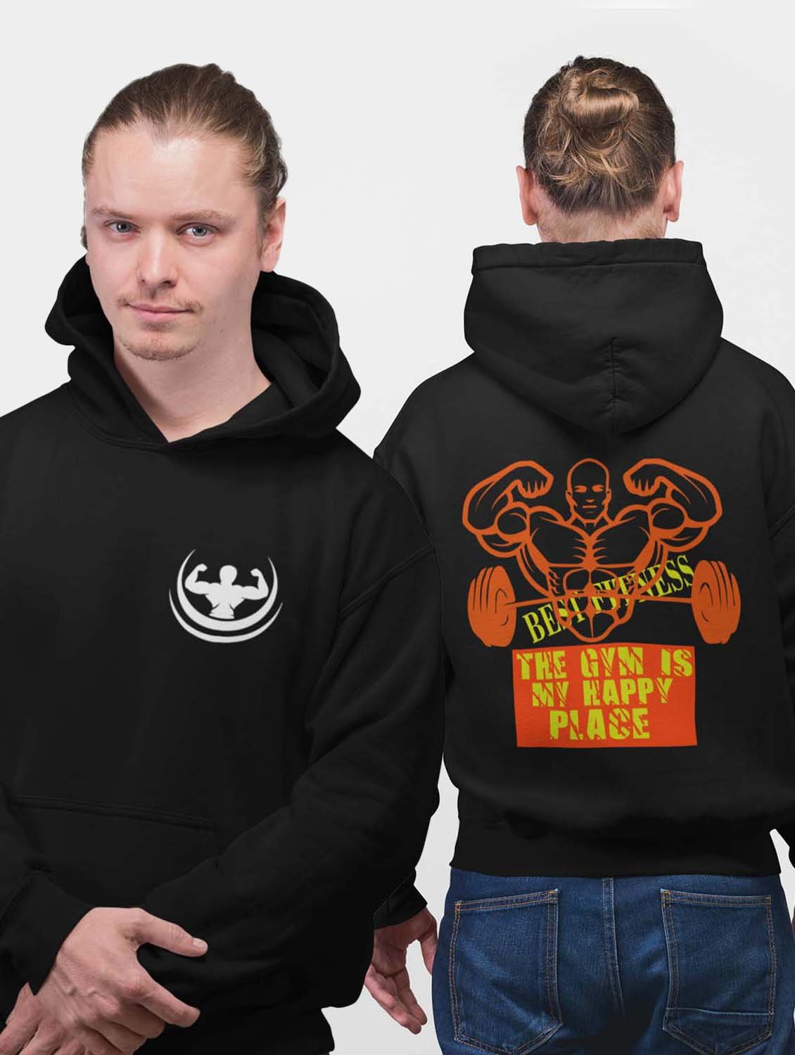 The Gym Is My Happy Place, (BG Orange) printed artswear black hoodies for winter casual wear specially for Men