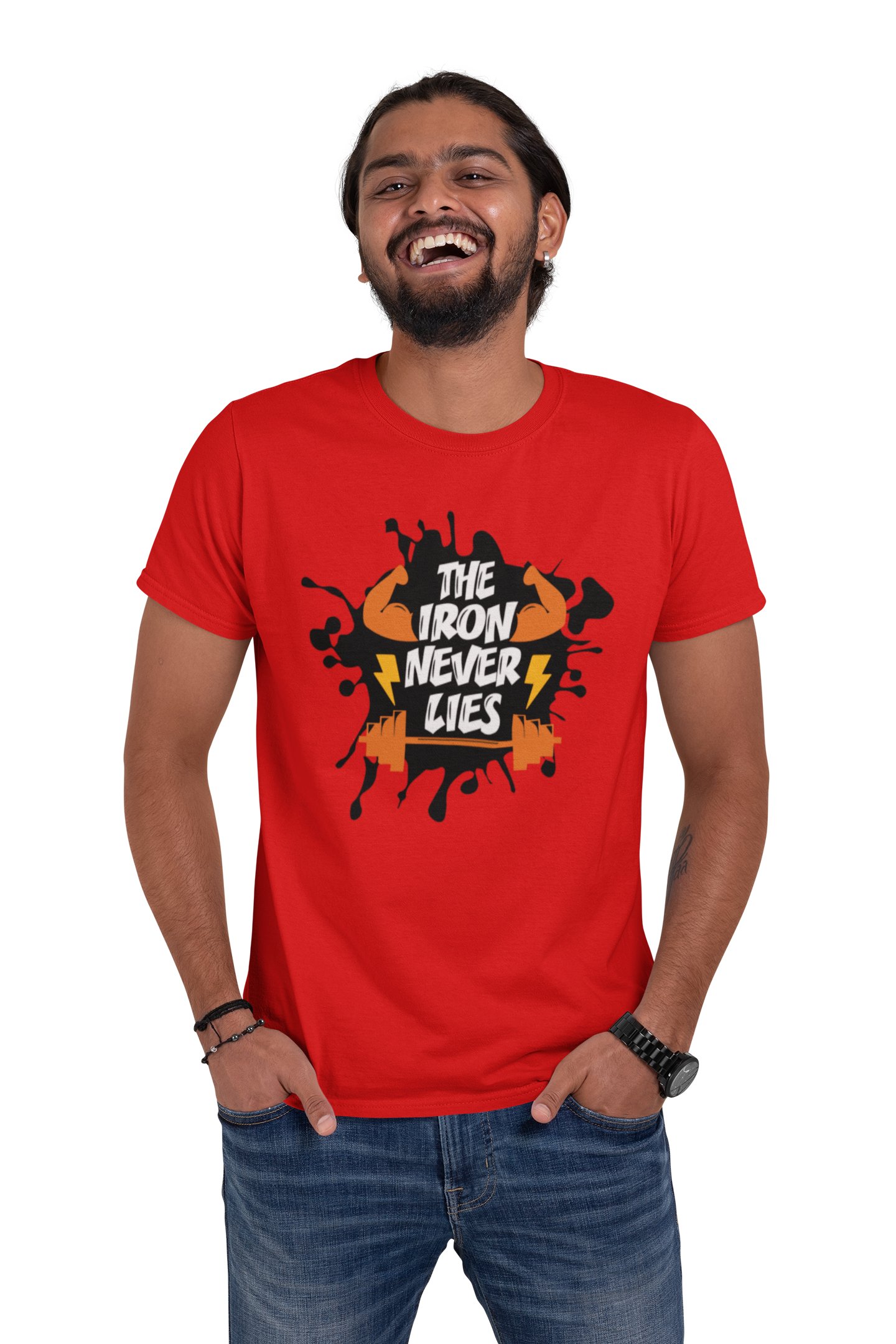 The Iron Never Lies, (BG Blue, Brown and Black), Round Neck Gym Tshirt (Red Tshirt) - Clothes for Gym Lovers - Foremost Gifting Material for Your Friends and Close Ones