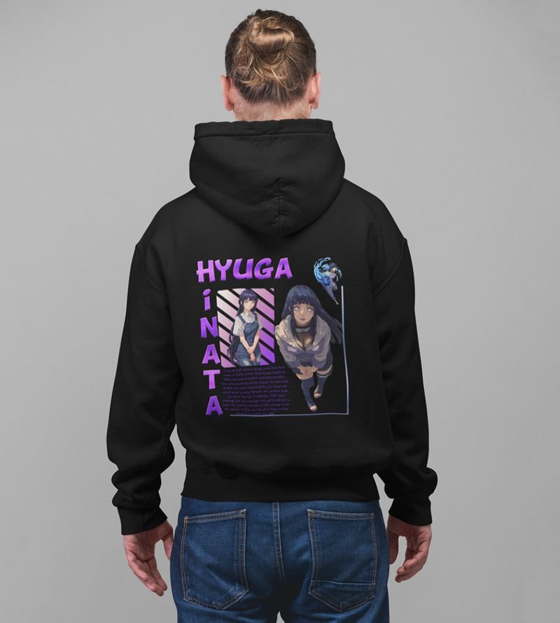The Moon Princess and Gentle Heroine of the Hidden Leaf Printed Black Cotton Hoodie For Men