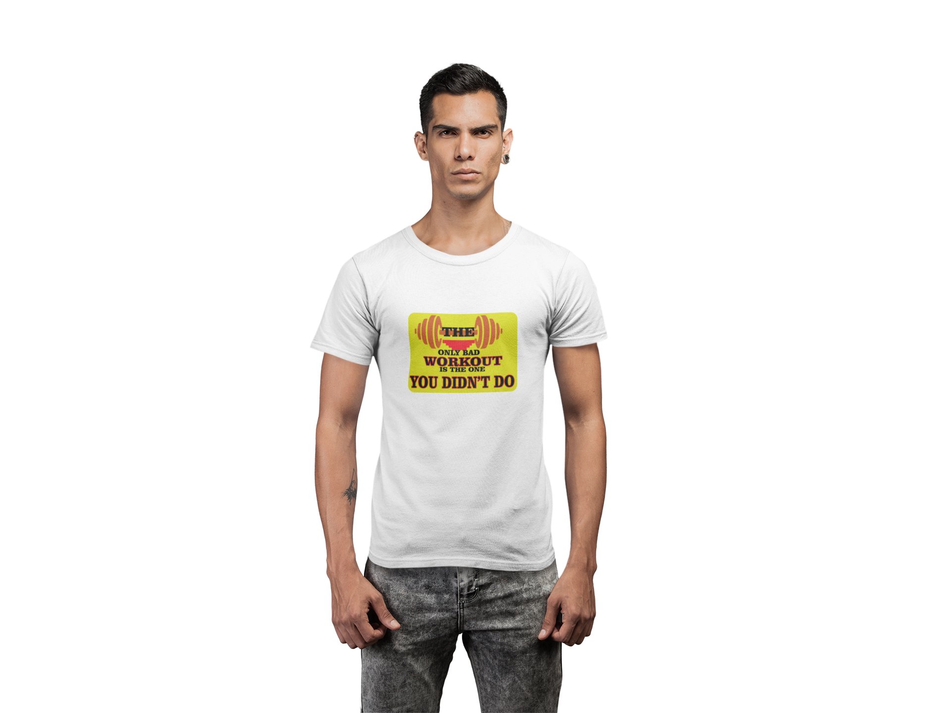 The Only Bad Workout is The One, You Didn't Do, (BG Yellow), Round Neck Gym Tshirt (White Tshirt) - Clothes for Gym Lovers - Suitable for Gym Going Person - Foremost Gifting Material for Your Friends and Close Ones