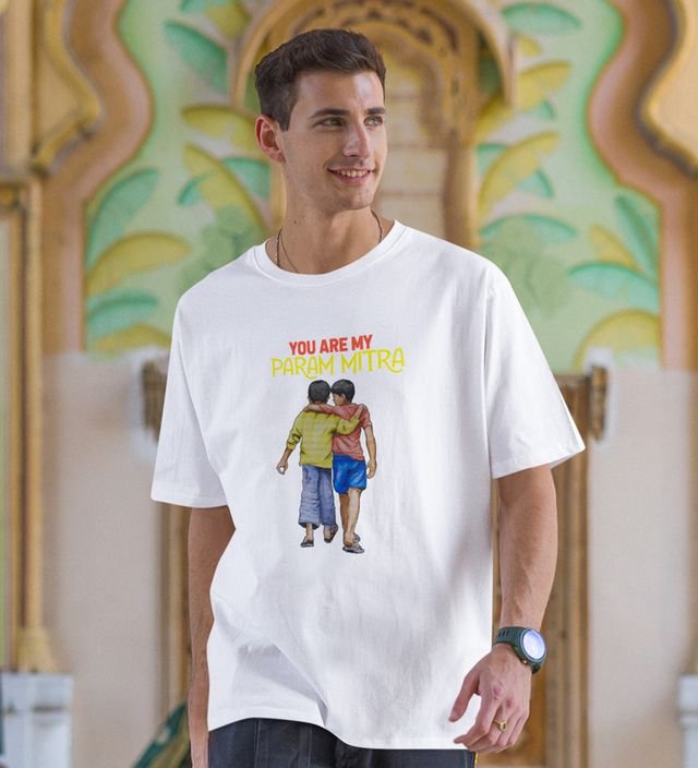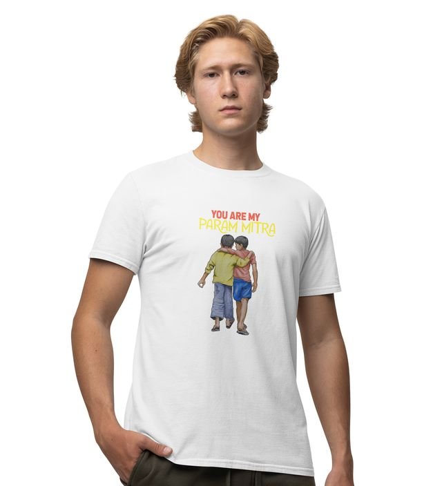 The Param Mitra White Round Neck Cotton Half Sleeved Men T-Shirt with Printed Graphics