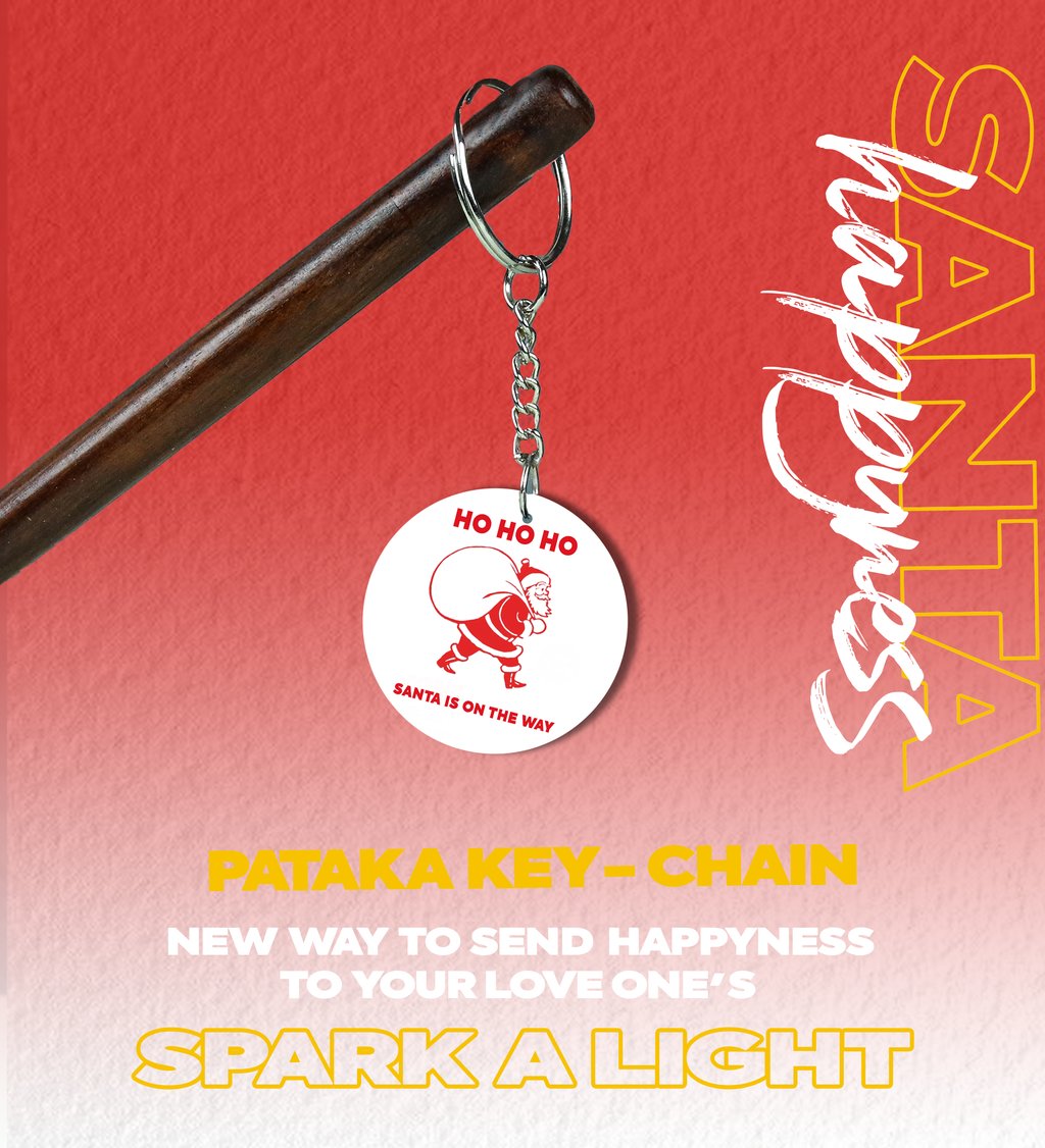 The Start of Festive Fun with Santa Surprise Printed Round Keychain Pack of 2.