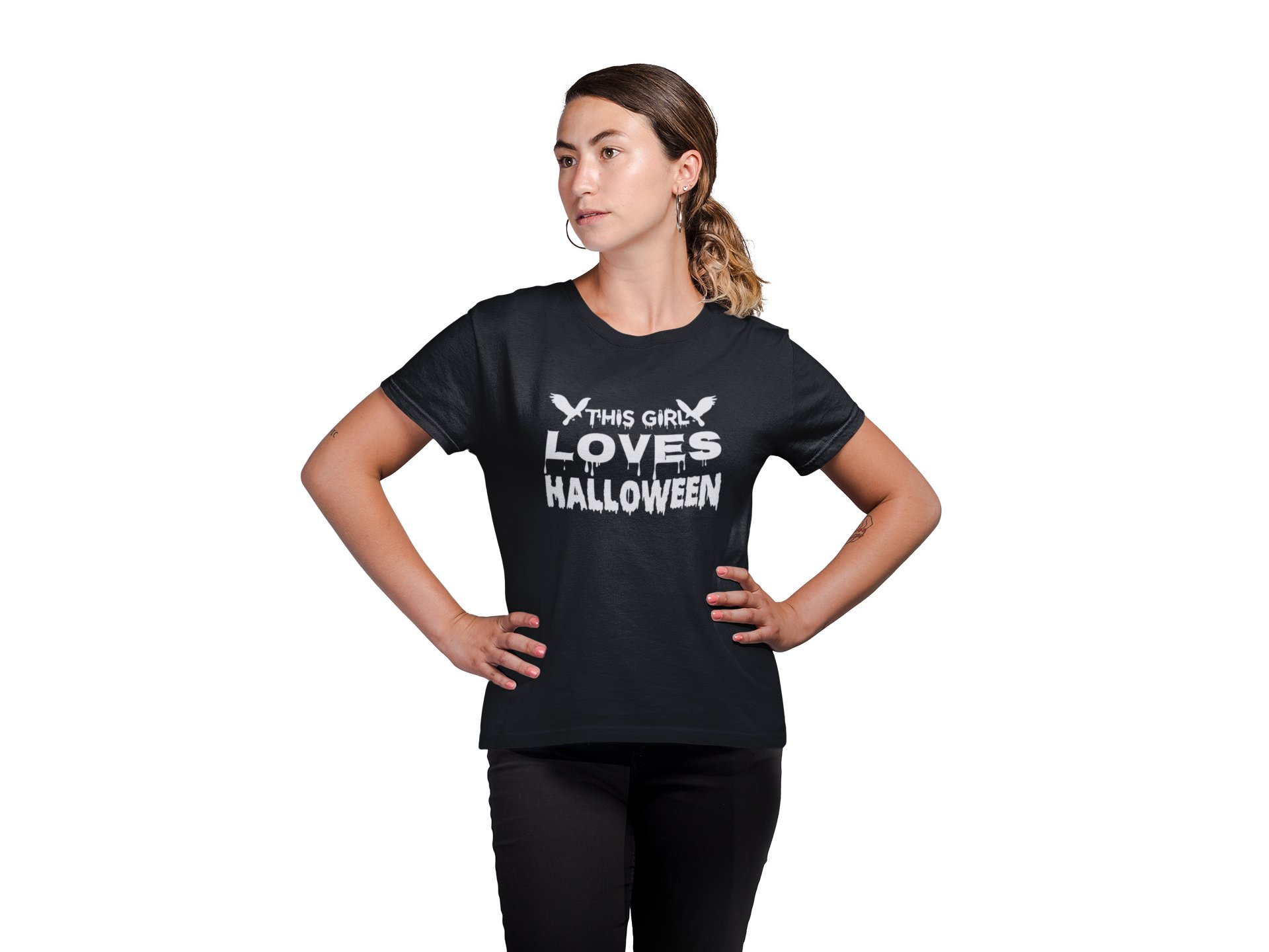 This girl loves Halloween, Only font - Printed Tees for Women's -designed for Halloween