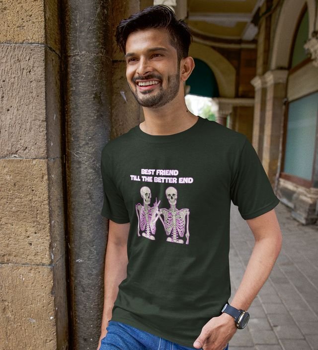 Till The Better End Green Round Neck Cotton Half Sleeved Men T Shirt with Printed Graphics