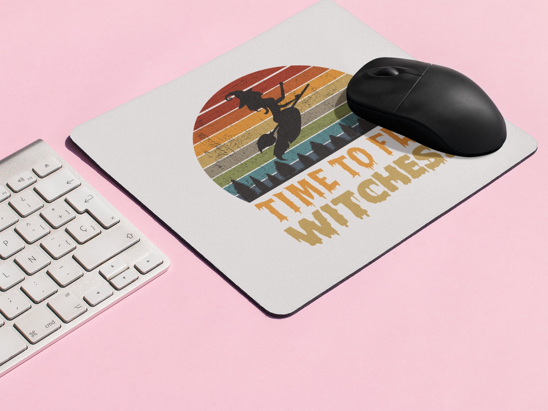 Time To fly Witches-Flying Witch-Halloween Theme Mousepads