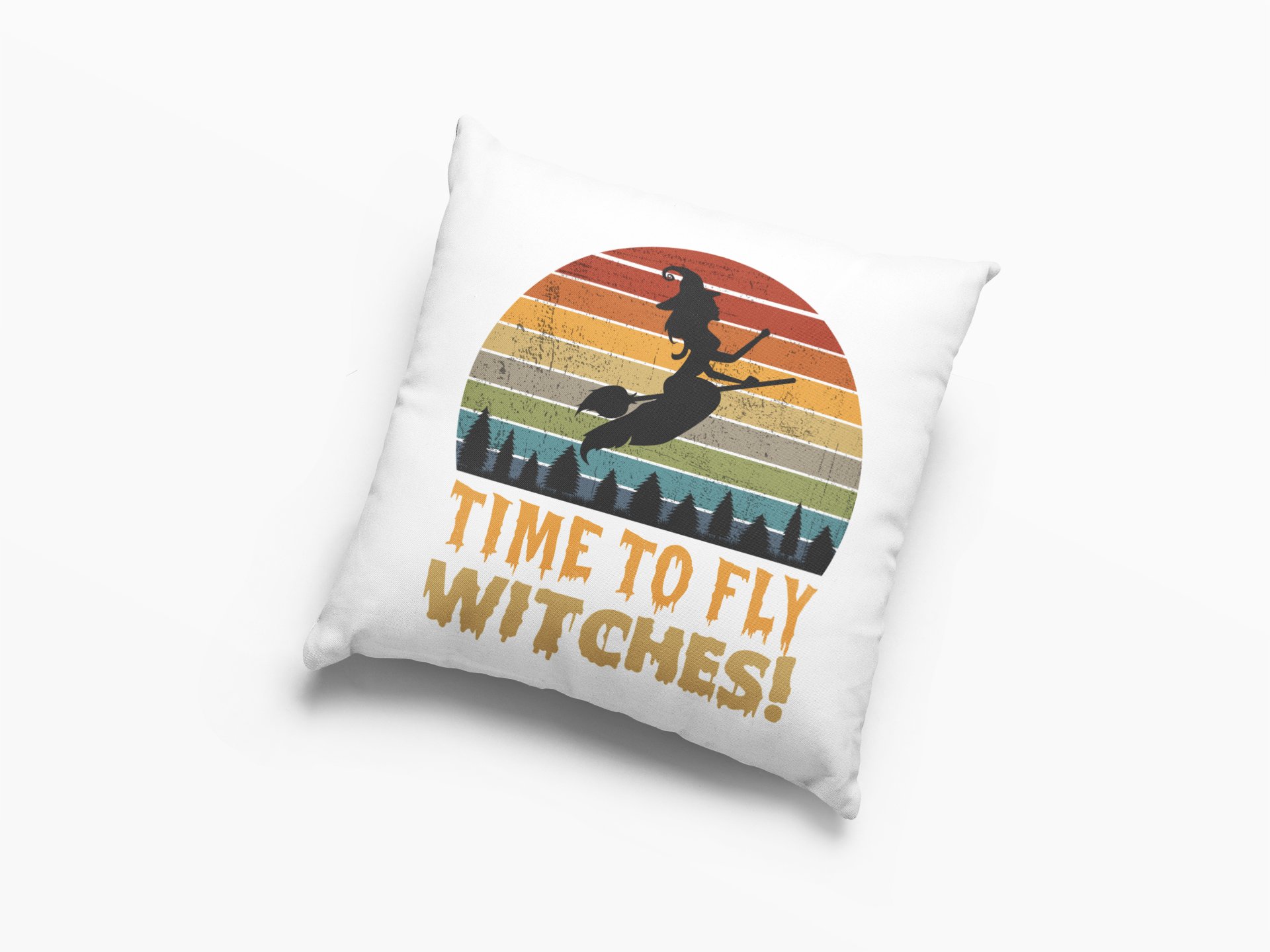 Time To fly Witches-Flying Witch-Halloween Theme Pillow Covers (Pack Of 2)