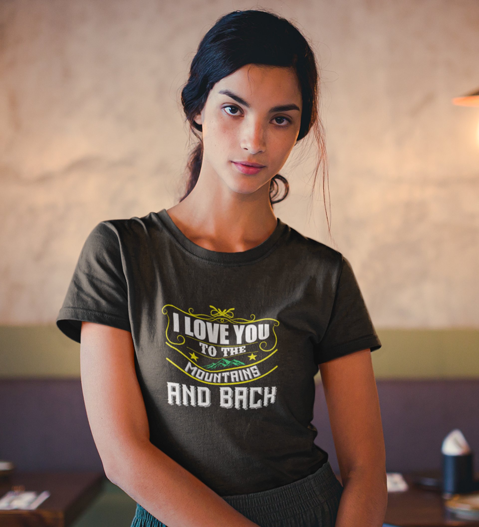 HopOfferTo The Mountains Black Round Neck Cotton Half Sleeved Women's T-Shirt with Printed Graphics