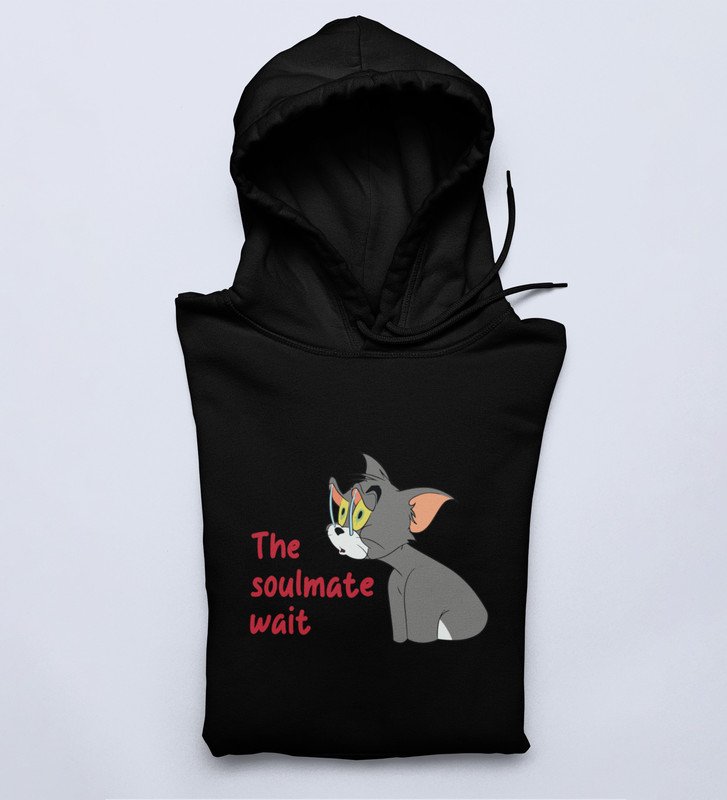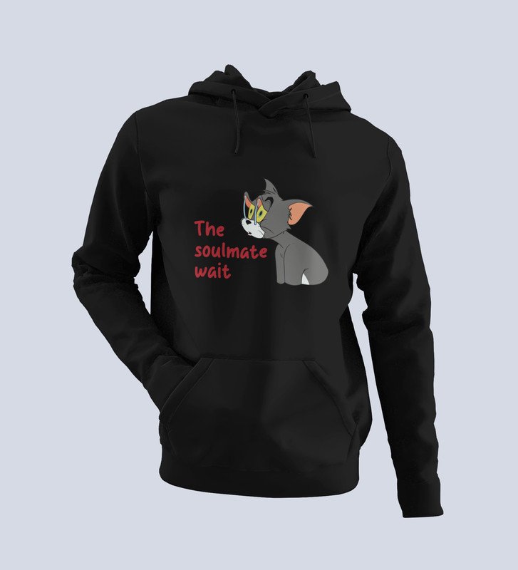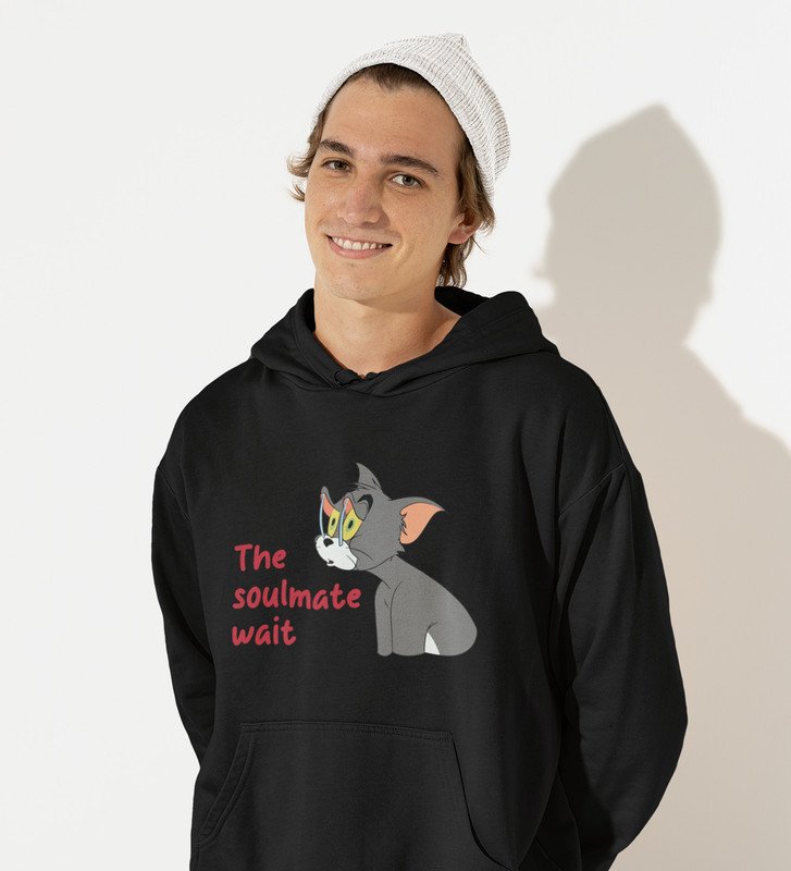 Tom Is Waiting For Soulmate: Printed (black) Hoodies For Singles