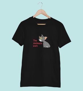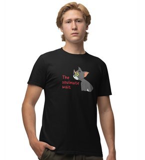 Tom Is Waiting For Soulmate: Printed (black) T-Shirt For Singles