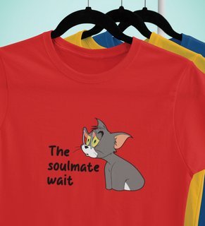 Tom Is Waiting For Soulmate: Printed (Red) T-Shirt For Singles