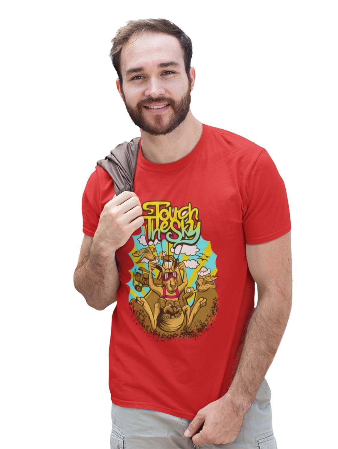 High Jump Kangaroo Red Round Neck Cotton Half Sleeved T-Shirt with Printed Graphics