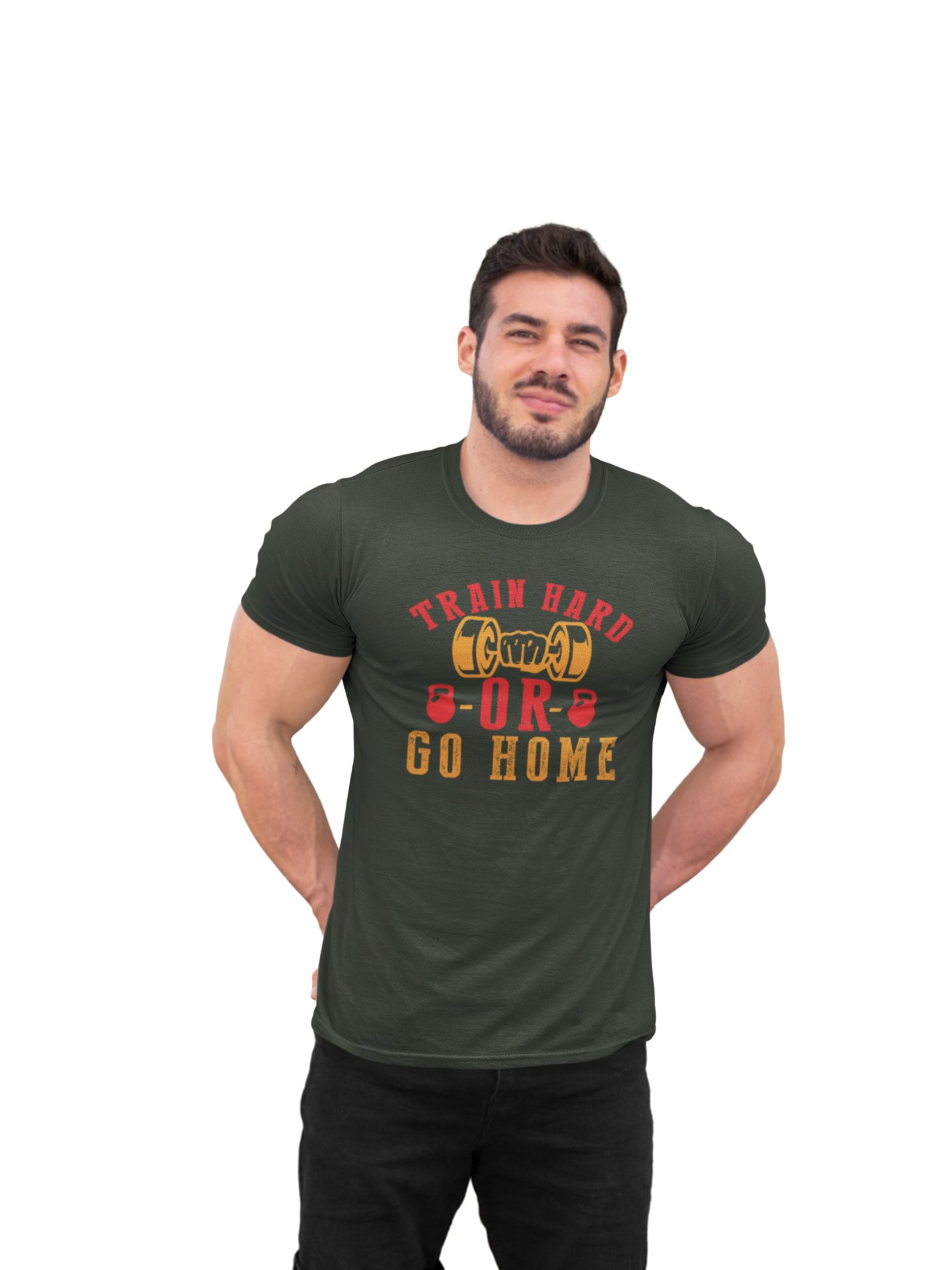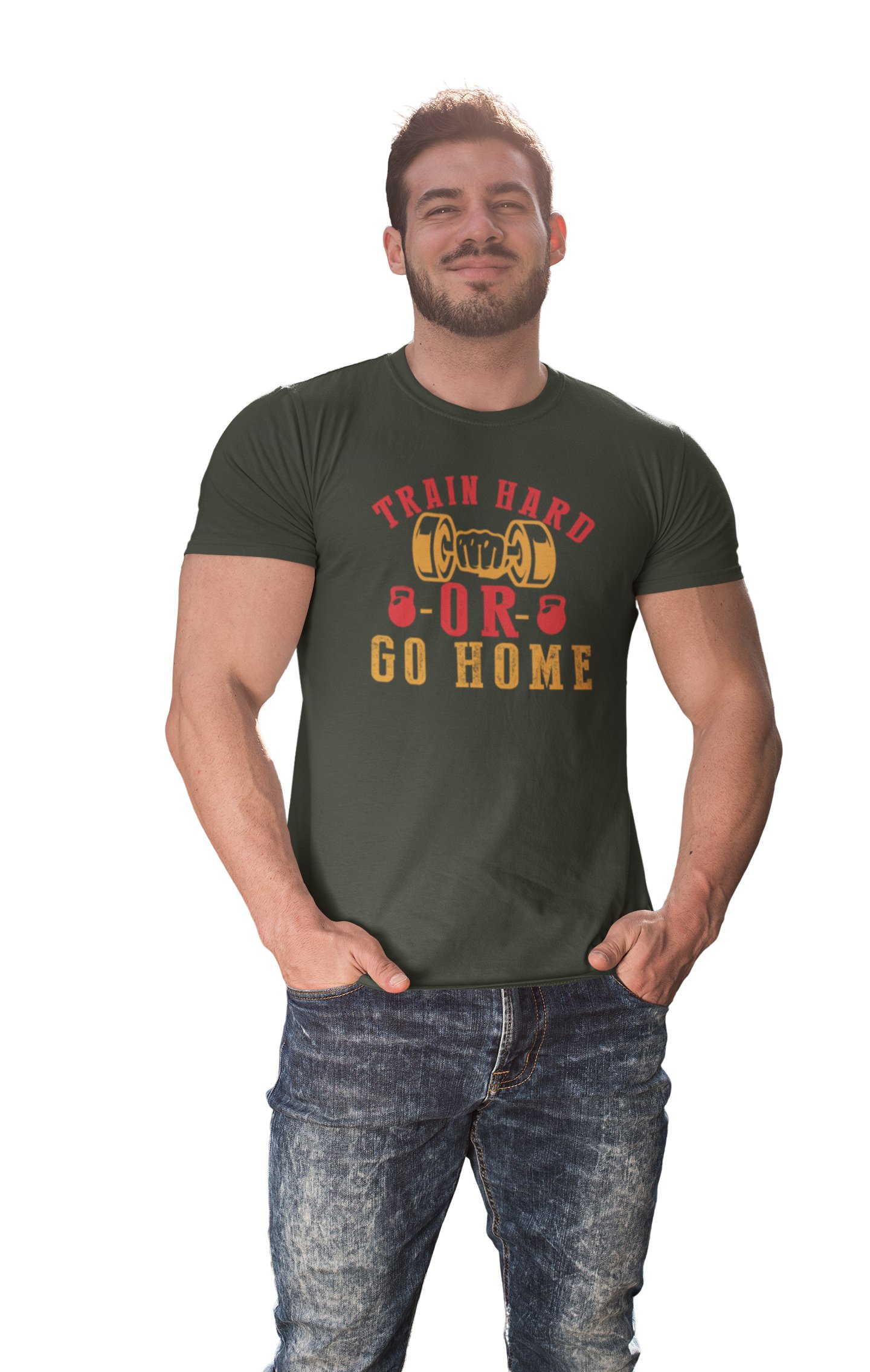 Train Hard or Go Home, Round Neck Gym Tshirt (BG Red, Golden) - Foremost Gifting Material for Your Friends and Close Ones